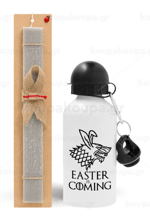 Easter is coming (GOT), Easter Set, metallic aluminum water bottle (500ml) & aromatic flat Easter candle (30cm) (GRAY)