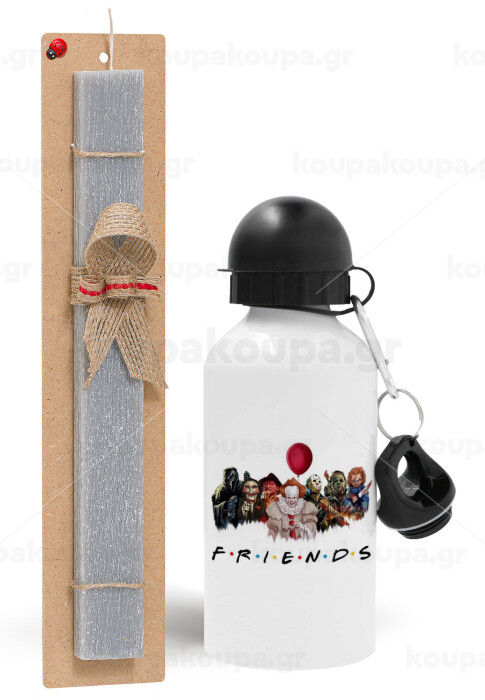 Halloween Friends, Easter Set, metallic aluminum water bottle (500ml) & aromatic flat Easter candle (30cm) (GRAY)