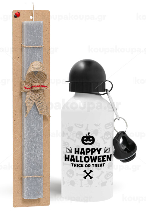 Happy Halloween pumpkin, Easter Set, metallic aluminum water bottle (500ml) & aromatic flat Easter candle (30cm) (GRAY)