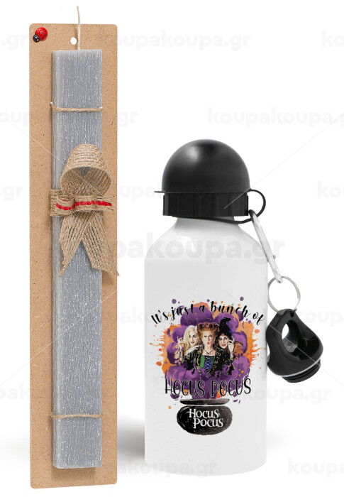 Hocus Pocus, Easter Set, metallic aluminum water bottle (500ml) & aromatic flat Easter candle (30cm) (GRAY)