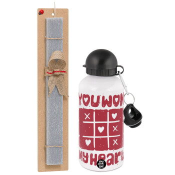 Τρίλιζα you won my heart, Easter Set, metallic aluminum water bottle (500ml) & aromatic flat Easter candle (30cm) (GRAY)