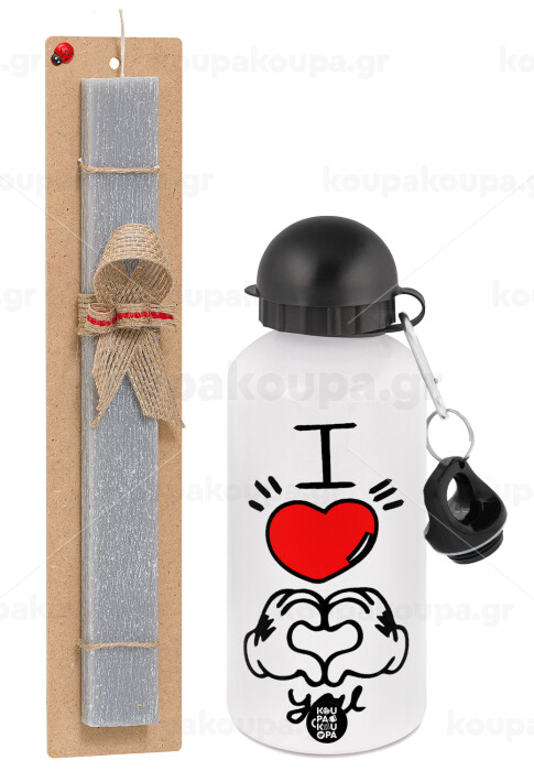 comics hands love, Easter Set, metallic aluminum water bottle (500ml) & aromatic flat Easter candle (30cm) (GRAY)