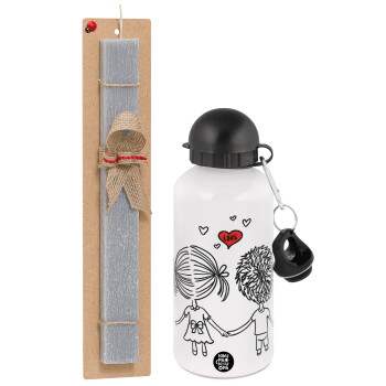 Hold my hand for ever, Easter Set, metallic aluminum water bottle (500ml) & aromatic flat Easter candle (30cm) (GRAY)