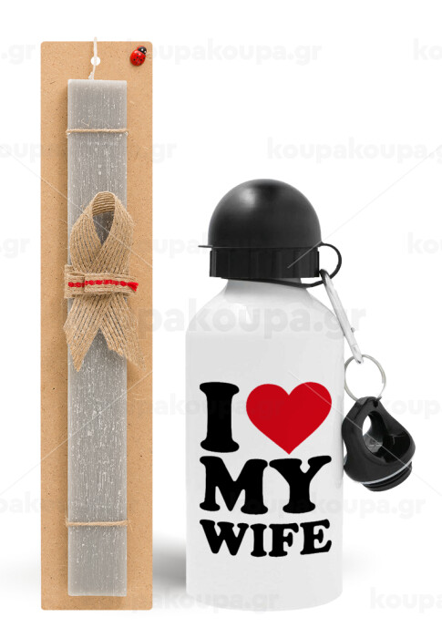 I Love my Wife, Easter Set, metallic aluminum water bottle (500ml) & aromatic flat Easter candle (30cm) (GRAY)