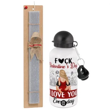 I love You Everyday , Easter Set, metallic aluminum water bottle (500ml) & aromatic flat Easter candle (30cm) (GRAY)