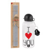 I Love You small dots, Easter Set, metallic aluminum water bottle (500ml) & aromatic flat Easter candle (30cm) (GRAY)