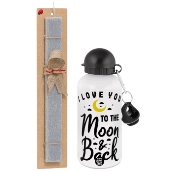 I love you to the moon and back, Easter Set, metallic aluminum water bottle (500ml) & aromatic flat Easter candle (30cm) (GRAY)