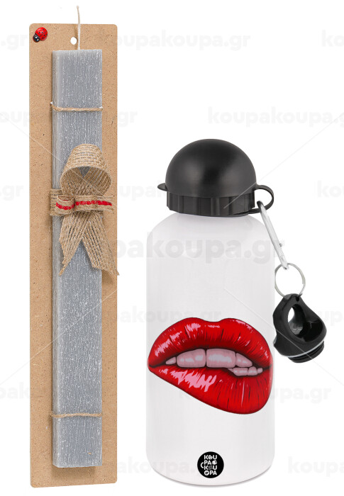 Lips, Easter Set, metallic aluminum water bottle (500ml) & aromatic flat Easter candle (30cm) (GRAY)