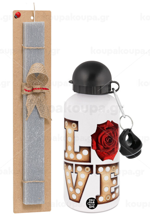 Love lights and roses, Easter Set, metallic aluminum water bottle (500ml) & aromatic flat Easter candle (30cm) (GRAY)