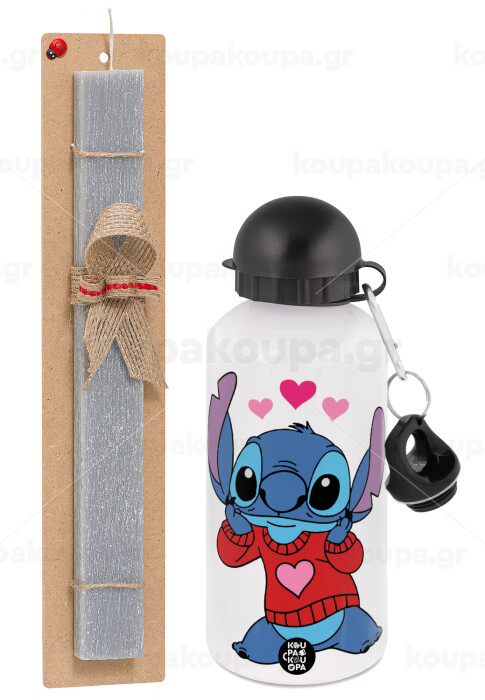 Stitch heart, Easter Set, metallic aluminum water bottle (500ml) & aromatic flat Easter candle (30cm) (GRAY)