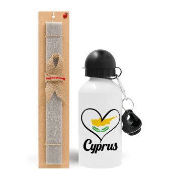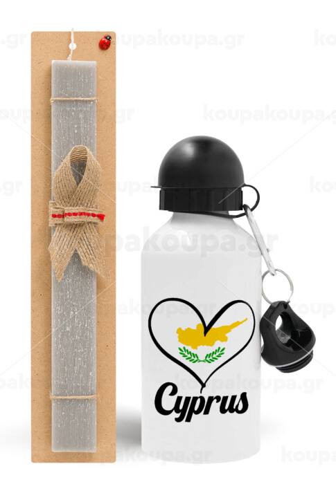 Cyprus flag, Easter Set, metallic aluminum water bottle (500ml) & aromatic flat Easter candle (30cm) (GRAY)