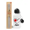 Japan flag, Easter Set, metallic aluminum water bottle (500ml) & aromatic flat Easter candle (30cm) (GRAY)