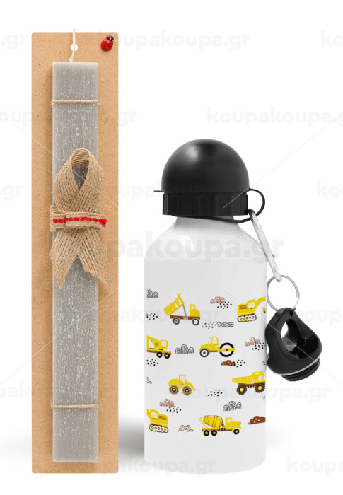 Car construction, Easter Set, metallic aluminum water bottle (500ml) & aromatic flat Easter candle (30cm) (GRAY)