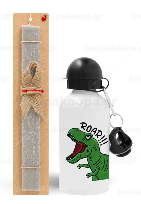 Dyno roar!!!, Easter Set, metallic aluminum water bottle (500ml) & aromatic flat Easter candle (30cm) (GRAY)