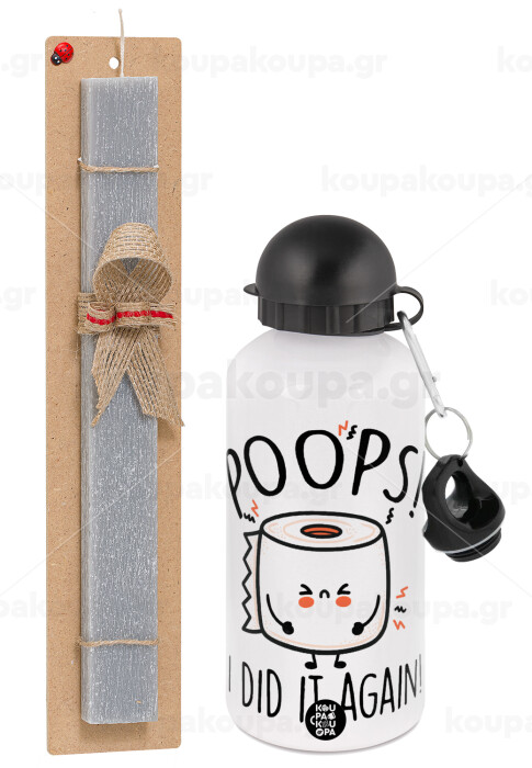 Poops!...I Did It Again, Easter Set, metallic aluminum water bottle (500ml) & aromatic flat Easter candle (30cm) (GRAY)