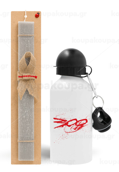 Οι 300 της Σπάρτης, Easter Set, metallic aluminum water bottle (500ml) & aromatic flat Easter candle (30cm) (GRAY)