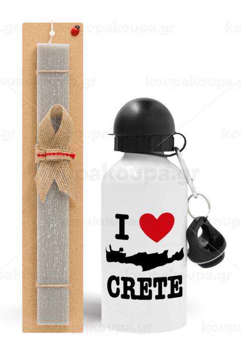 I Love Crete, Easter Set, metallic aluminum water bottle (500ml) & aromatic flat Easter candle (30cm) (GRAY)