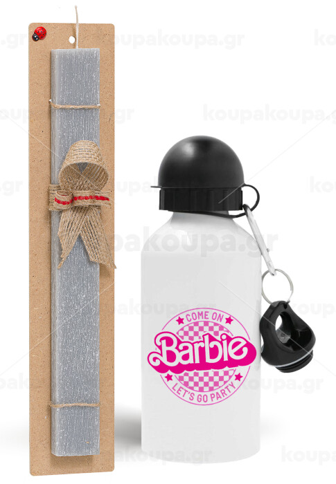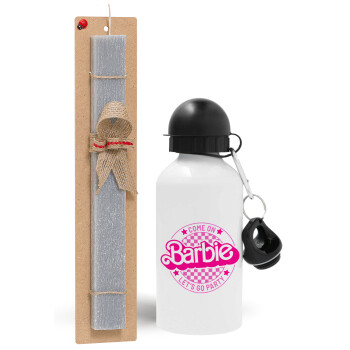 Come On Barbie Lets Go Party , Easter Set, metallic aluminum water bottle (500ml) & aromatic flat Easter candle (30cm) (GRAY)