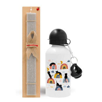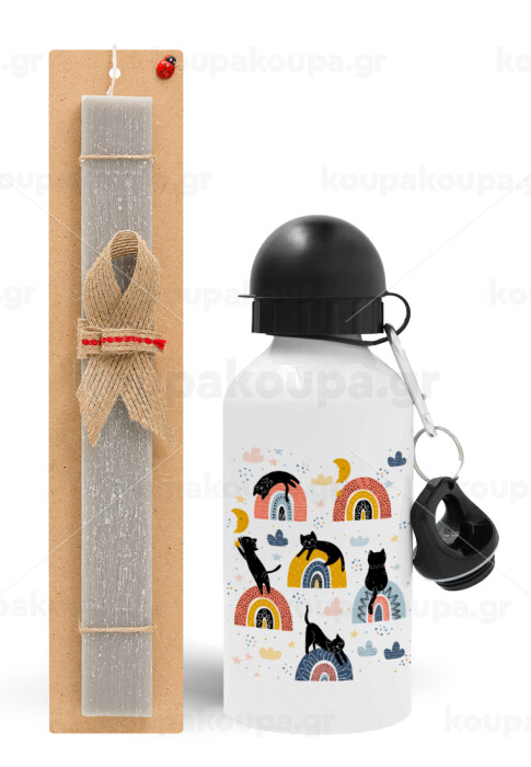 Γατούλες, Easter Set, metallic aluminum water bottle (500ml) & aromatic flat Easter candle (30cm) (GRAY)