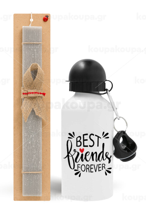Best Friends forever, Easter Set, metallic aluminum water bottle (500ml) & aromatic flat Easter candle (30cm) (GRAY)