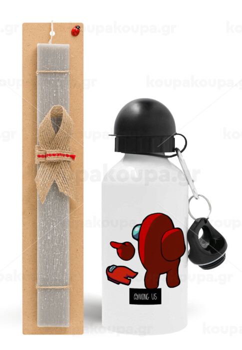 Among US i am impostor..., Easter Set, metallic aluminum water bottle (500ml) & aromatic flat Easter candle (30cm) (GRAY)