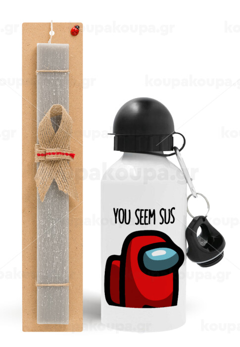 Among US, you seem sus, Easter Set, metallic aluminum water bottle (500ml) & aromatic flat Easter candle (30cm) (GRAY)