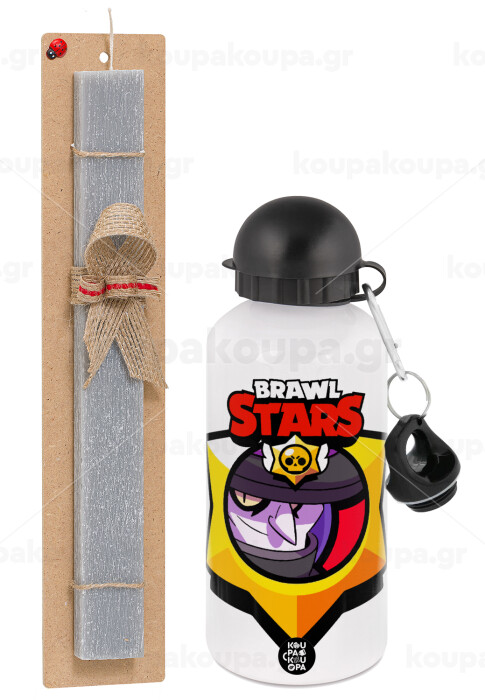 Brawl Stars Mortis, Easter Set, metallic aluminum water bottle (500ml) & aromatic flat Easter candle (30cm) (GRAY)