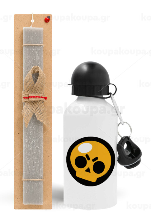Brawl Stars Skull, Easter Set, metallic aluminum water bottle (500ml) & aromatic flat Easter candle (30cm) (GRAY)