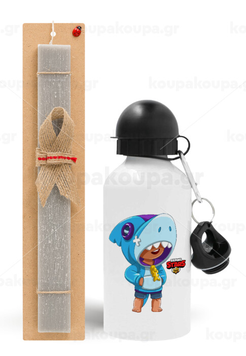 Brawl Stars Leon Shark, Easter Set, metallic aluminum water bottle (500ml) & aromatic flat Easter candle (30cm) (GRAY)