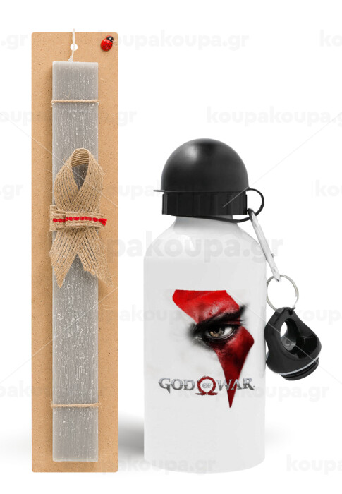 God of war Stratos, Easter Set, metallic aluminum water bottle (500ml) & aromatic flat Easter candle (30cm) (GRAY)