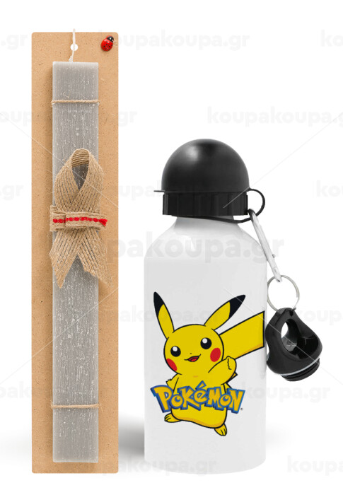 Pokemon pikachu, Easter Set, metallic aluminum water bottle (500ml) & aromatic flat Easter candle (30cm) (GRAY)