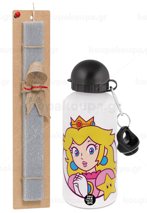 Princess Peach, Easter Set, metallic aluminum water bottle (500ml) & aromatic flat Easter candle (30cm) (GRAY)