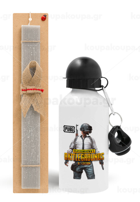 PUBG battleground royale, Easter Set, metallic aluminum water bottle (500ml) & aromatic flat Easter candle (30cm) (GRAY)