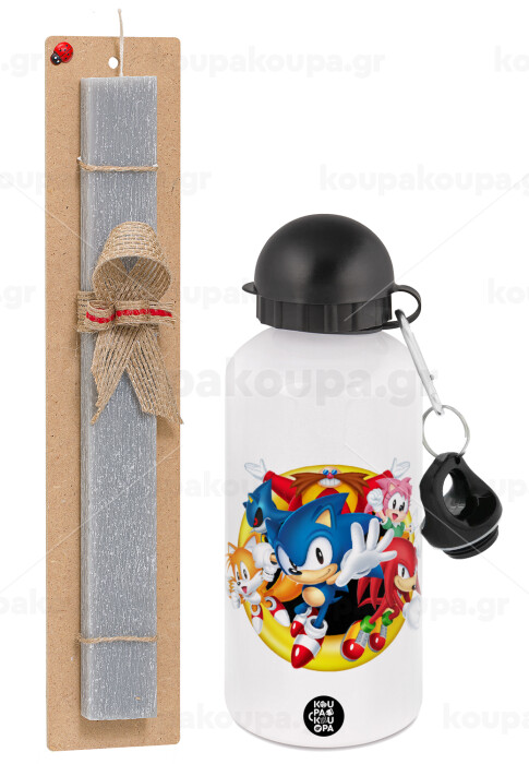 Sonic and friends, Easter Set, metallic aluminum water bottle (500ml) & aromatic flat Easter candle (30cm) (GRAY)