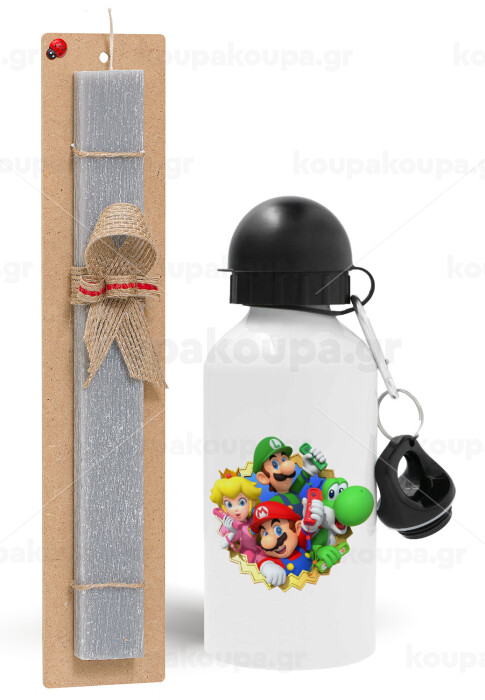 Super mario and Friends, Easter Set, metallic aluminum water bottle (500ml) & aromatic flat Easter candle (30cm) (GRAY)