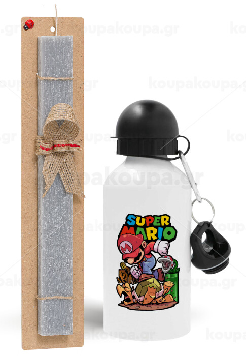 Super mario Jump, Easter Set, metallic aluminum water bottle (500ml) & aromatic flat Easter candle (30cm) (GRAY)
