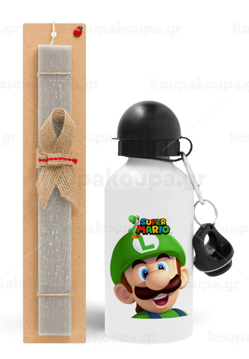 Super mario Luigi, Easter Set, metallic aluminum water bottle (500ml) & aromatic flat Easter candle (30cm) (GRAY)