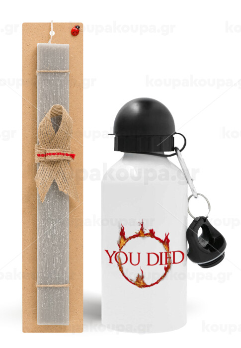 You Died | Dark Souls, Easter Set, metallic aluminum water bottle (500ml) & aromatic flat Easter candle (30cm) (GRAY)