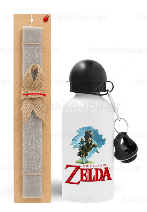 Zelda, Easter Set, metallic aluminum water bottle (500ml) & aromatic flat Easter candle (30cm) (GRAY)