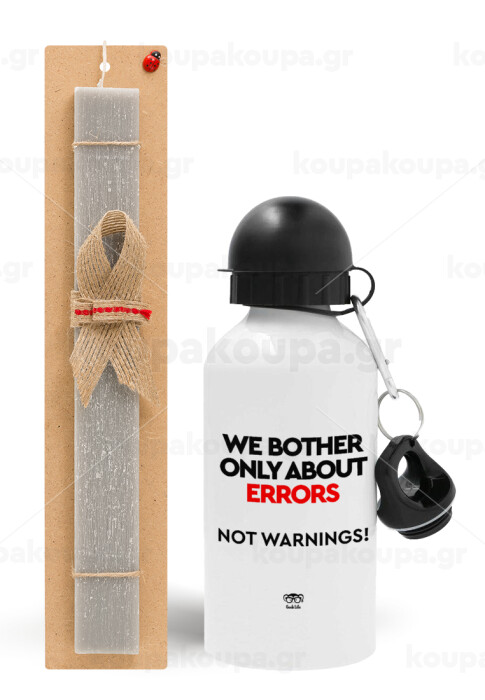 We bother only about errors, not warnings, Easter Set, metallic aluminum water bottle (500ml) & aromatic flat Easter candle (30cm) (GRAY)