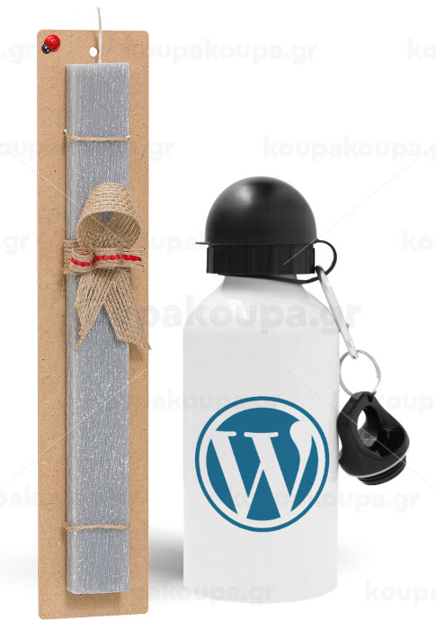 Wordpress, Easter Set, metallic aluminum water bottle (500ml) & aromatic flat Easter candle (30cm) (GRAY)