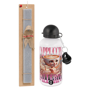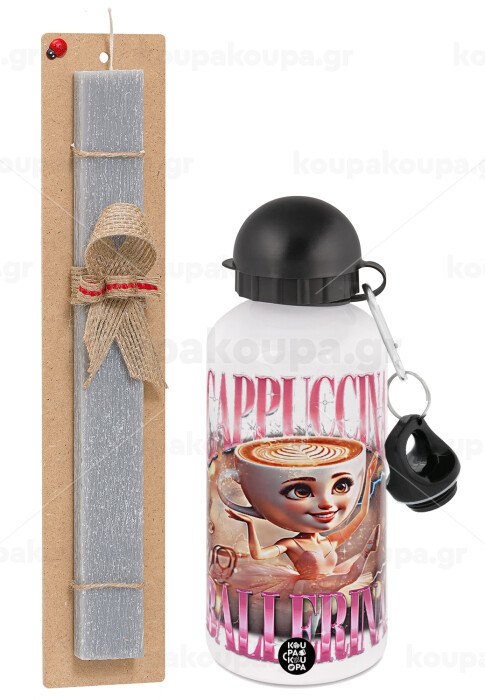 BALLERINA CAPUCHINA FUNK, Easter Set, metallic aluminum water bottle (500ml) & aromatic flat Easter candle (30cm) (GRAY)