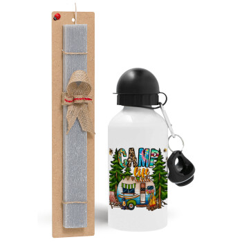 Camp Life, Easter Set, metallic aluminum water bottle (500ml) & aromatic flat Easter candle (30cm) (GRAY)