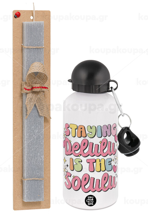 Delulu, Easter Set, metallic aluminum water bottle (500ml) & aromatic flat Easter candle (30cm) (GRAY)