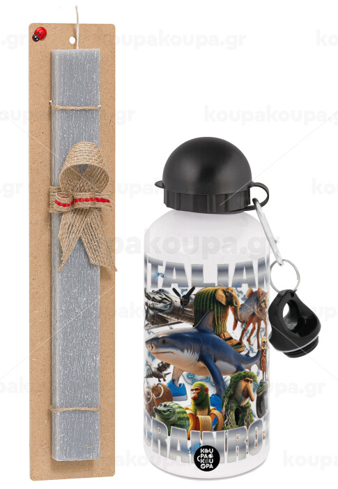 Italian Brainrot, Easter Set, metallic aluminum water bottle (500ml) & aromatic flat Easter candle (30cm) (GRAY)