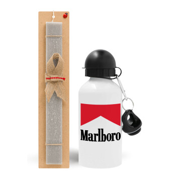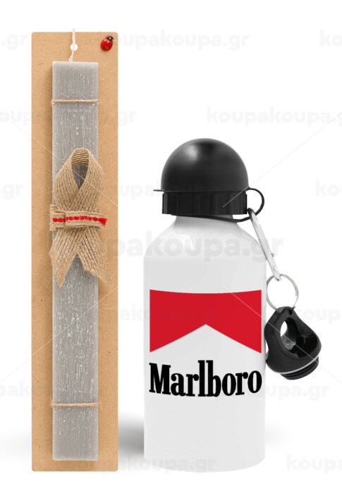 Marlboro, Easter Set, metallic aluminum water bottle (500ml) & aromatic flat Easter candle (30cm) (GRAY)