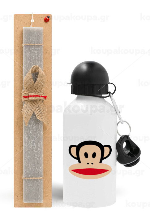 Monkey, Easter Set, metallic aluminum water bottle (500ml) & aromatic flat Easter candle (30cm) (GRAY)