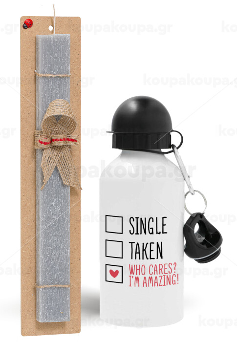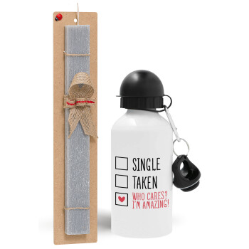 Single, Taken, Who cares i'm amazing, Easter Set, metallic aluminum water bottle (500ml) & aromatic flat Easter candle (30cm) (GRAY)