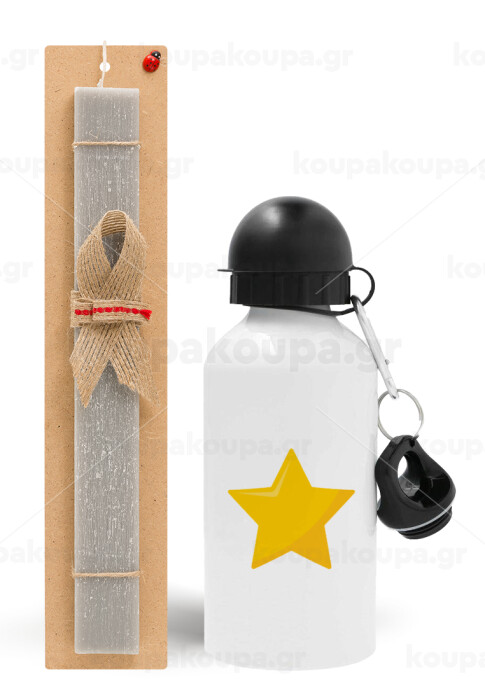 Star, Easter Set, metallic aluminum water bottle (500ml) & aromatic flat Easter candle (30cm) (GRAY)