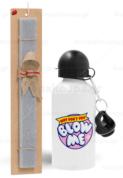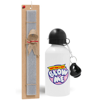 Why Don't You Blow Me Funny, Easter Set, metallic aluminum water bottle (500ml) & aromatic flat Easter candle (30cm) (GRAY)